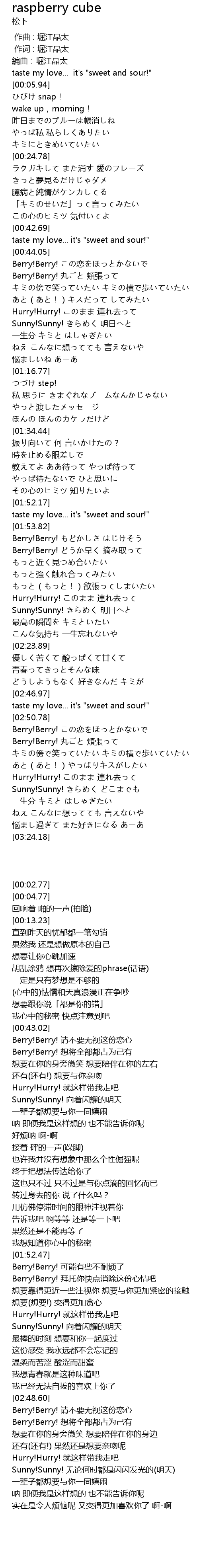 | [01:58.43] | Berry!Berry! 拜托你快点消除这份心情吧 |