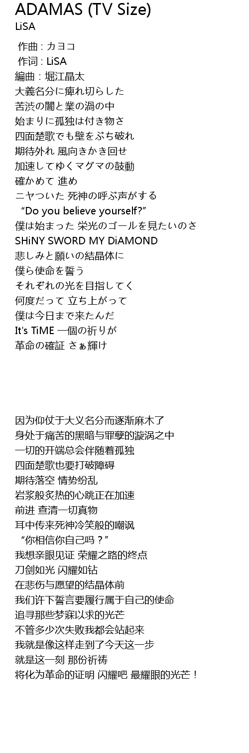 | [00:01.000] | 作词 : LiSA |