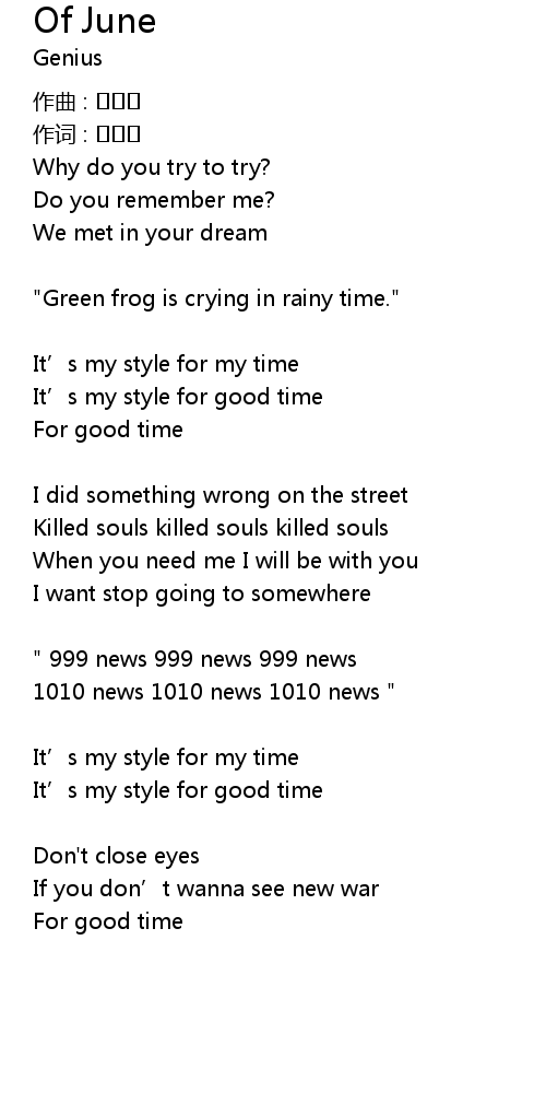 | "Green frog is crying in rainy time." | |