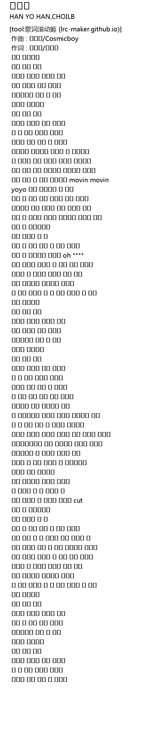 [00:00.000] 作曲 : 한요한/Cosmicboy