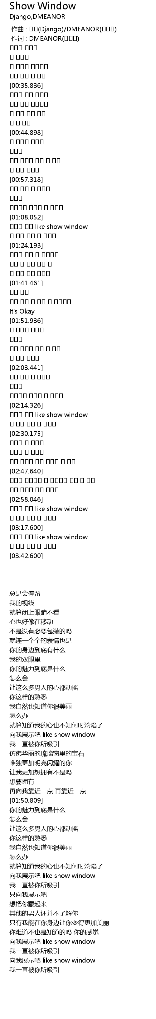| [00:01.000] | 作词 : DMEANOR(디미너) |
