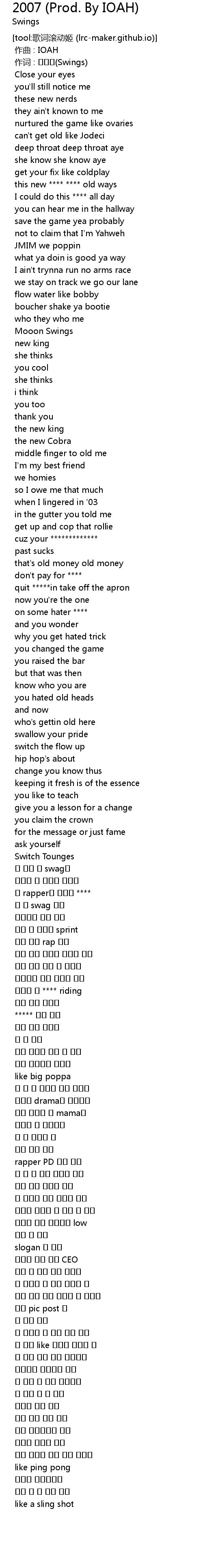 | 歌曲 | 2007 (Prod. By IOAH) |