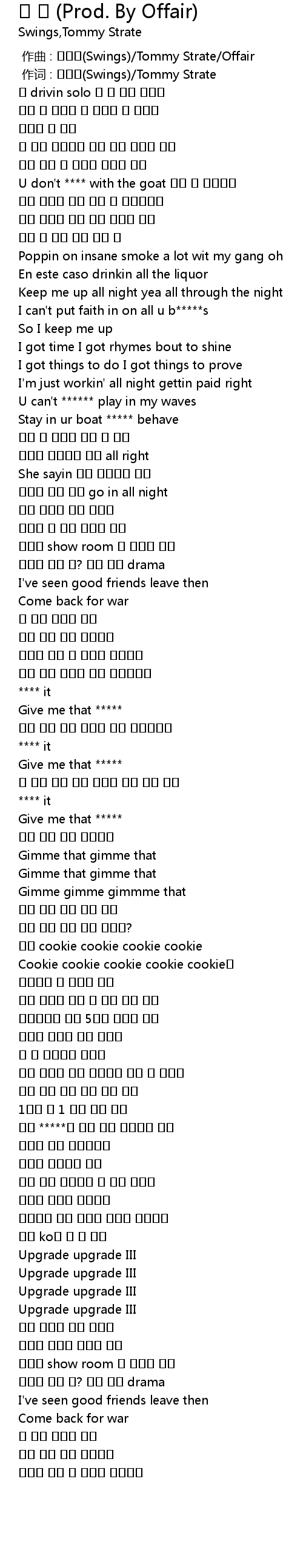 | [00:00.000] | 作曲 : 스윙스(Swings)/Tommy Strate/Offair |