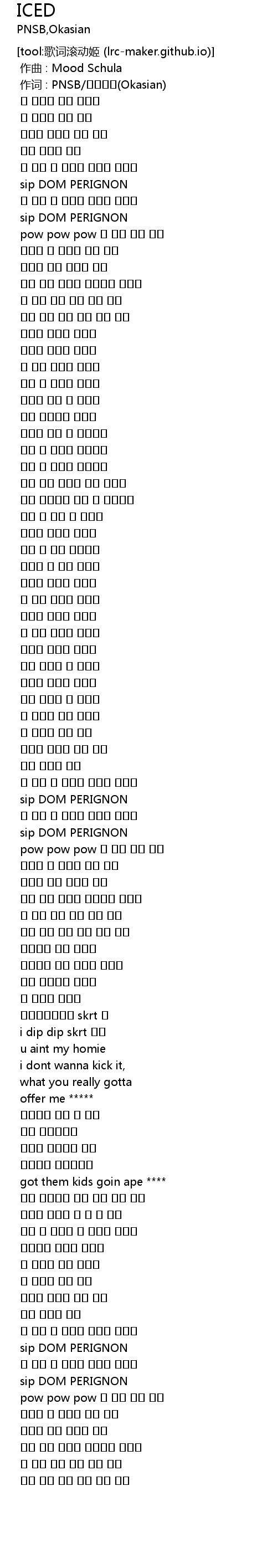 | [00:01.000] | 作词 : PNSB/오케이션(Okasian) |