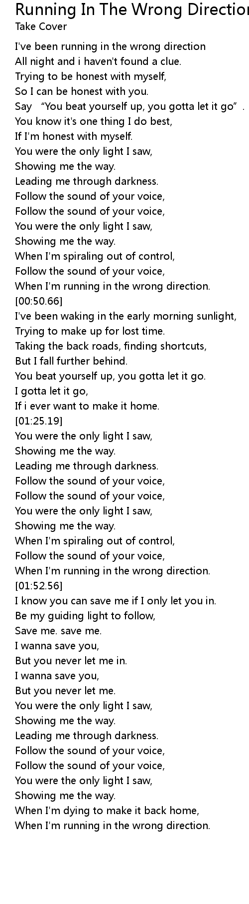 | [01:49.36] | When I'm running in the wrong direction. |