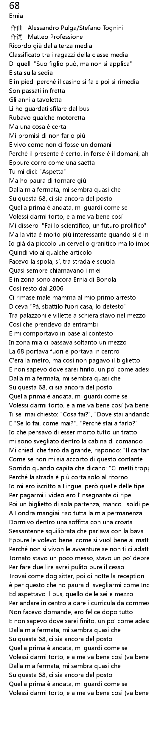 | [01:26.91] | La 68 portava fuori e portava in centro |