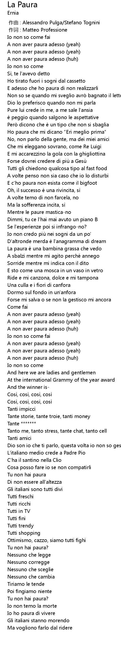 | [01:29.40] | A non aver paura adesso (yeah) |