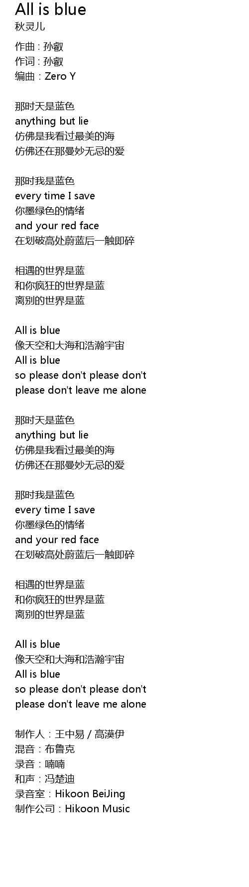 | 歌曲 | All is blue |