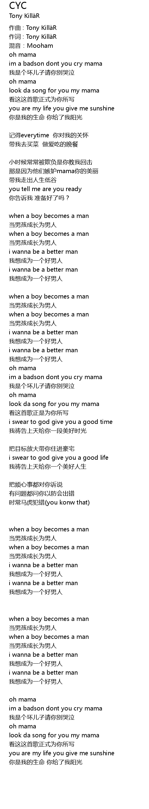 | im a badson dont you cry mama | |