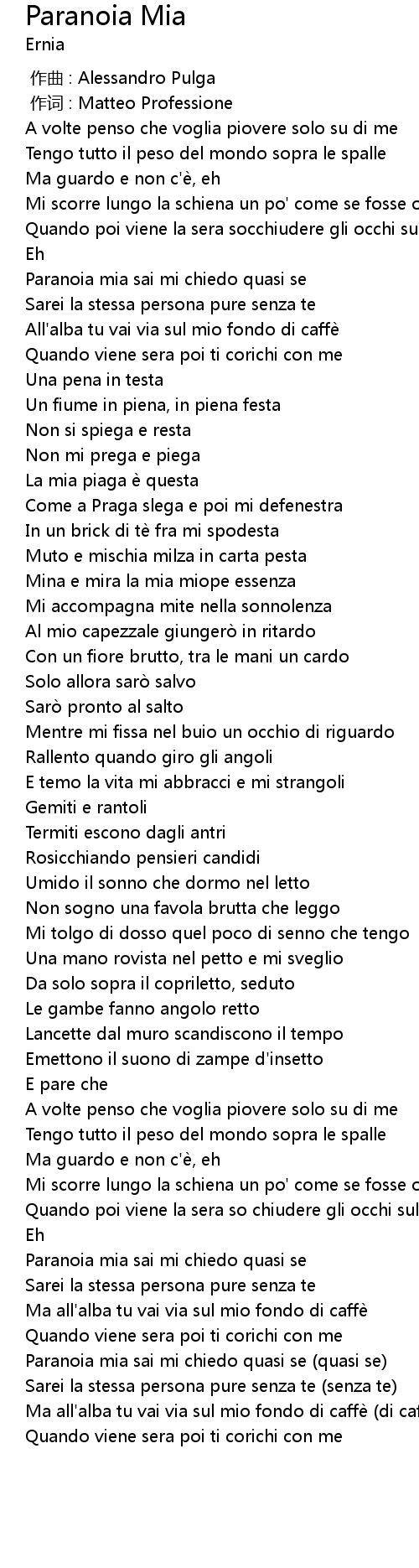 | [02:10.80] | Paranoia mia sai mi chiedo quasi se quasi se |