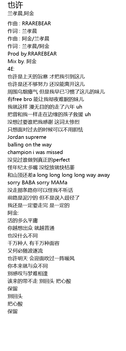 | 作词 : 兰孝晨/阿金 | |