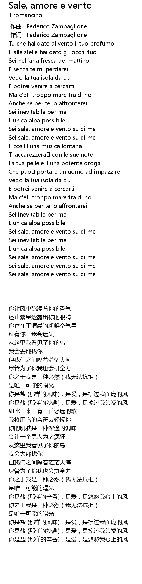 | [02:28.647] | Sei sale, amore e vento su di me |