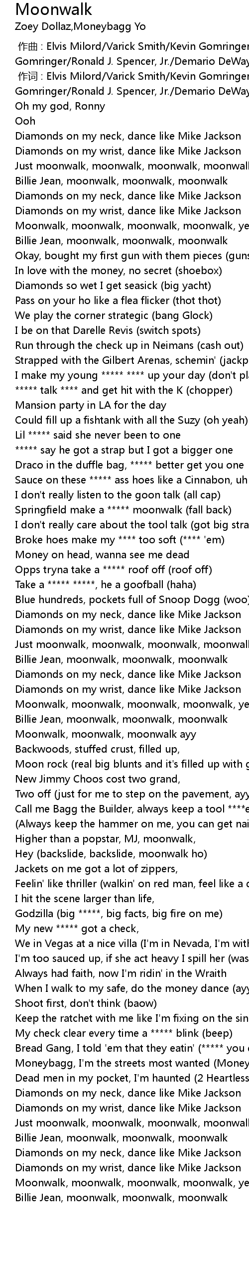 | [00:30.94] | Moonwalk, moonwalk, moonwalk, moonwalk, yeah (moonwalk) |