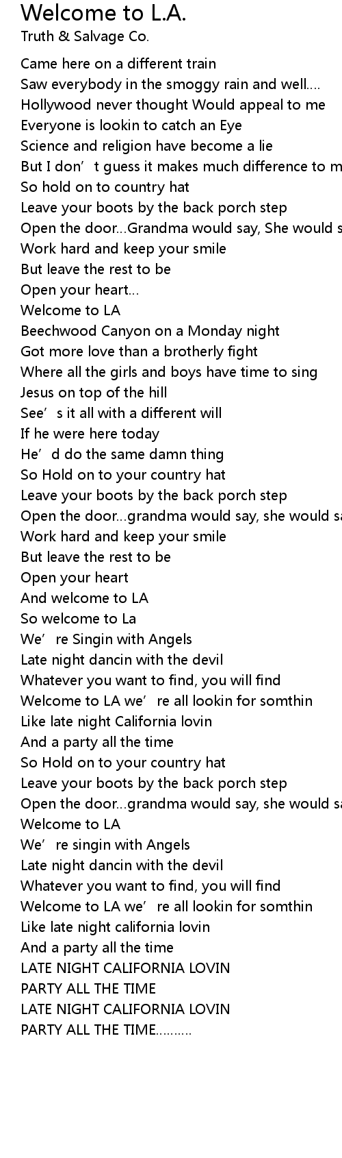 | Welcome to LA we' re all lookin for somthin | |