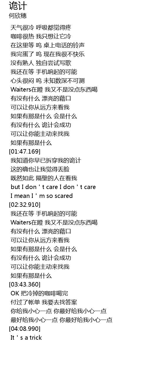 | [03:24.840] | 有没有什么 诡计会成功 |
