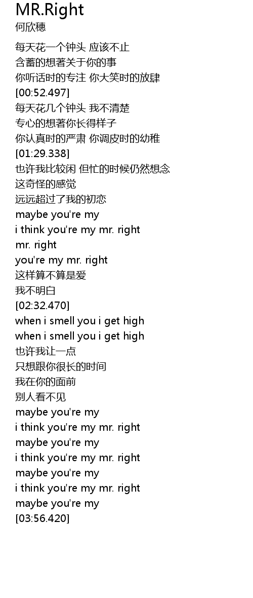 | [03:23.450] | i think you' re my mr. right |