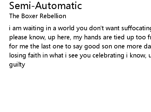 | i am waiting in a world you don't want suffocating by an endless weak spot please know, up here, my hands are tied up too from all i can see makes it hard for me the last one to say good son one more day you know i am here, but i am losing faith in what i see you celebrating i know, up here, i'll be proven guilty |