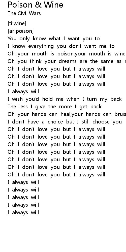 Oh your mouth is poison,your mouth is wine |