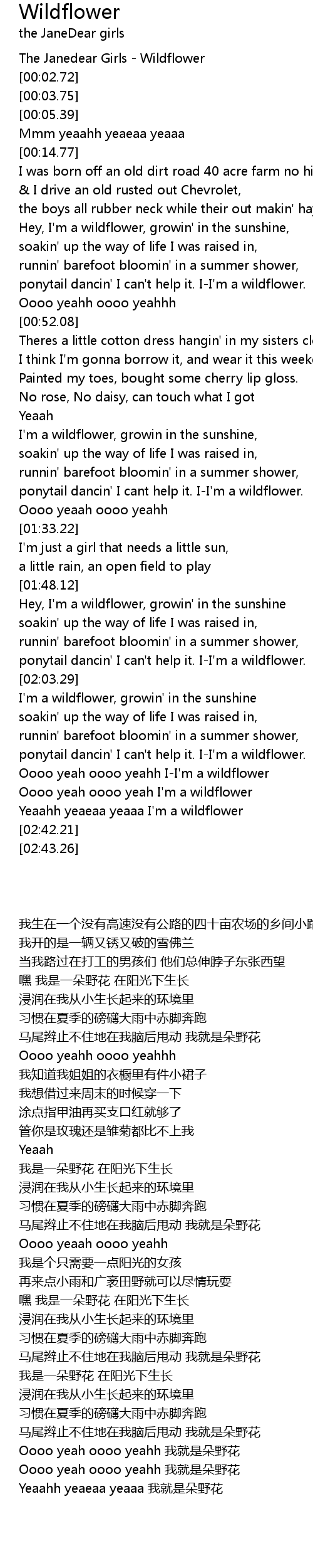 Oooo yeah oooo yeah I'm a wildflower |