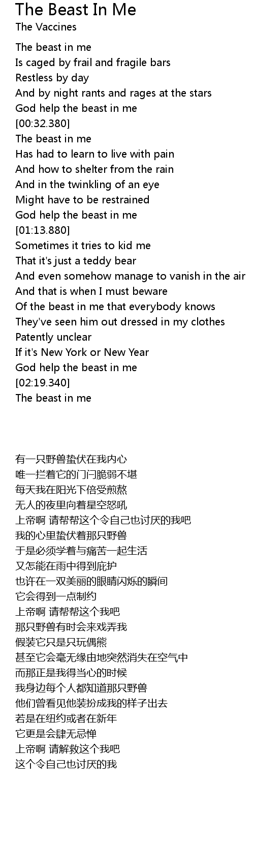God help the beast in me |