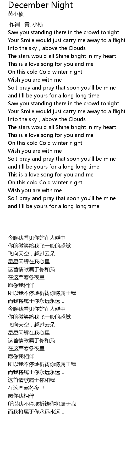 | [00:00.00] | 作词 : 黄, 小桢 |