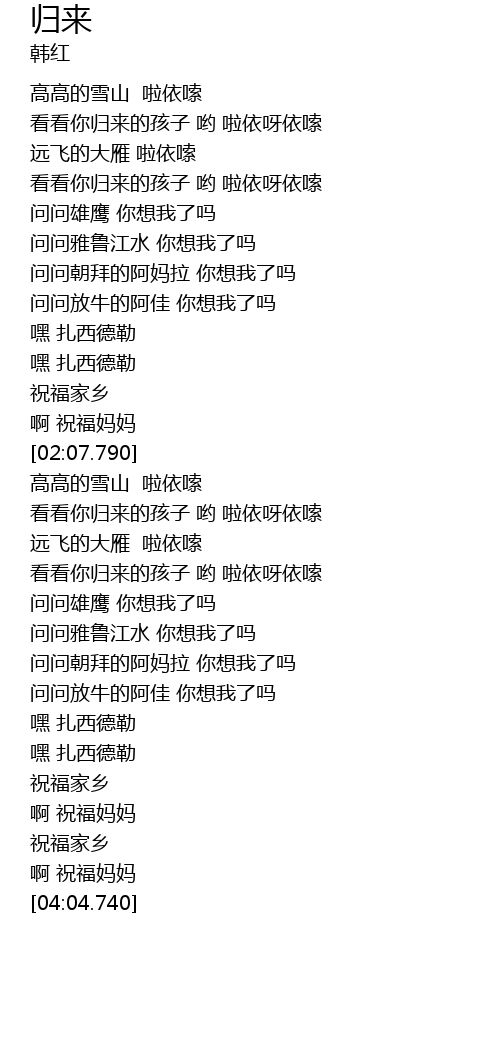 | [03:04.300] | 问问雅鲁江水 你想我了吗 |