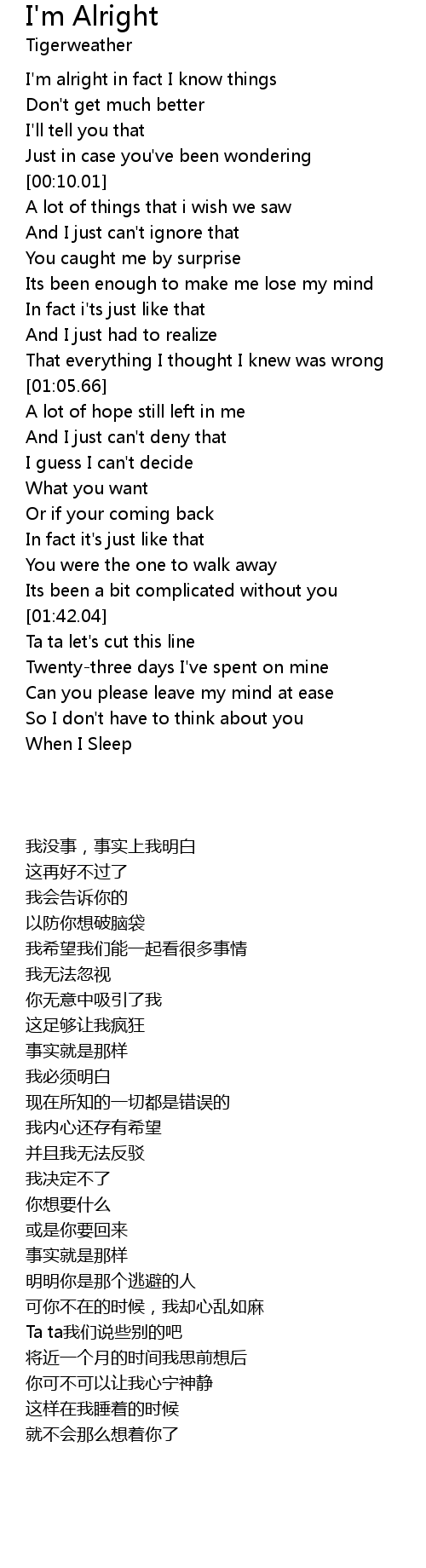 I'm alright in fact I know things |