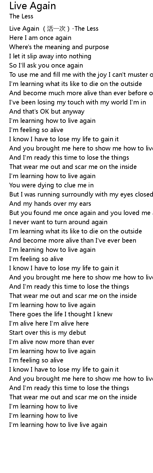 | [00:21.532] | I' m learning what its like to die on the outside |