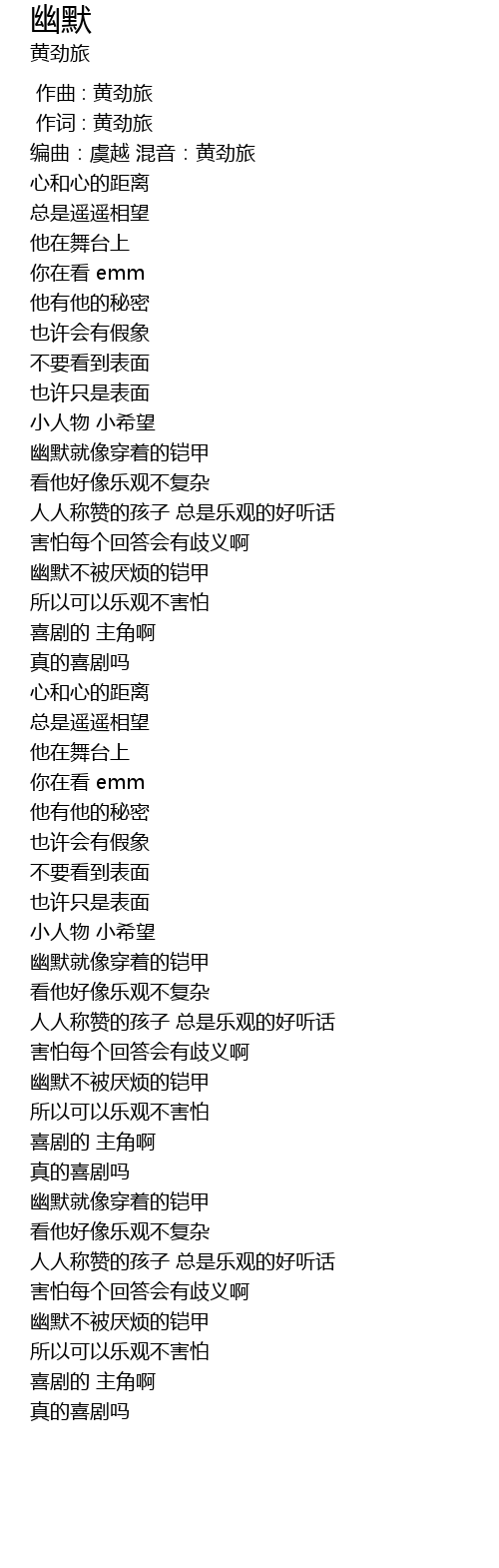 | [00:01.000] | 作词 : 黄劲旅 |