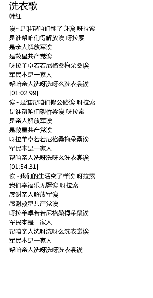 | [02:48.71] | 帮咱亲人洗呀洗呀洗衣裳诶 |