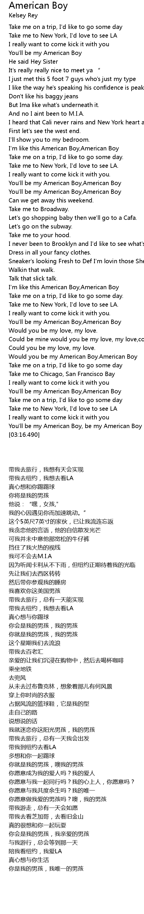| [02:19.040] | You'll be my American Boy,American Boy |