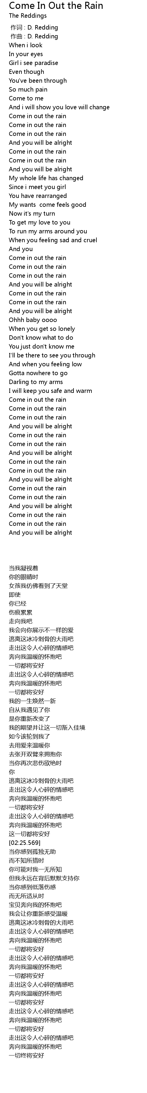 | [00:00.000] | 作词 : D. Redding |