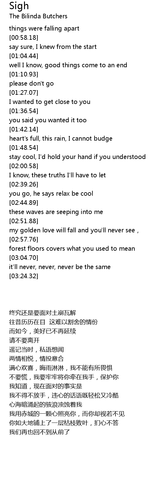 | [02:59.52] | 你如大地铺上了一层枯枝败叶,扪心不答 |