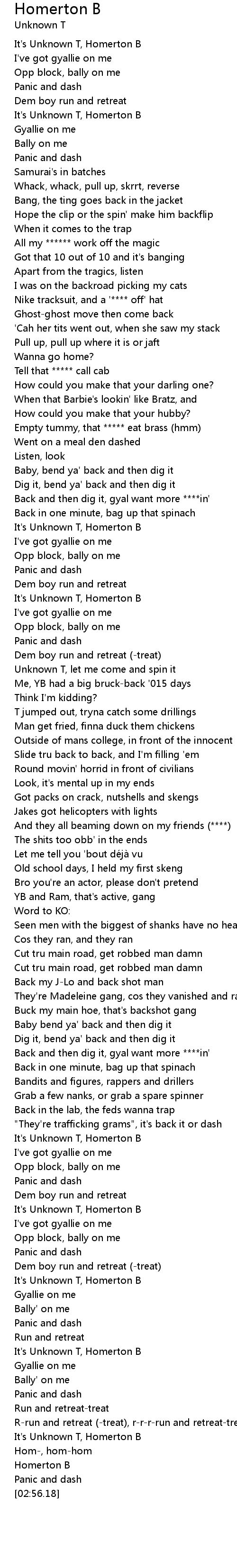 | [02:21.19] | It' s Unknown T, Homerton B |
