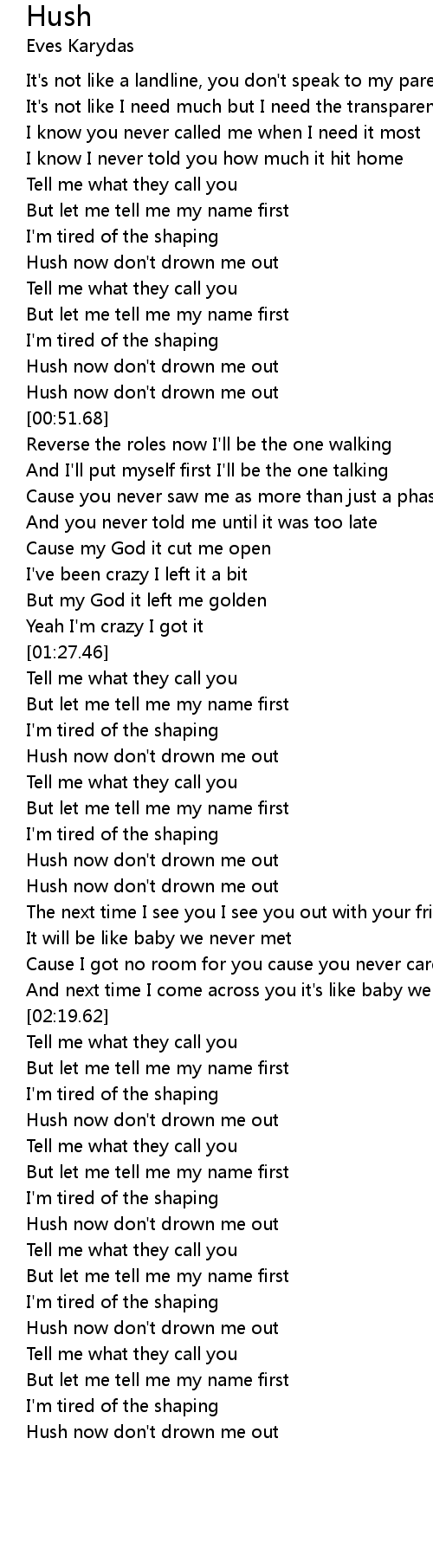 Hush now don't drown me out |