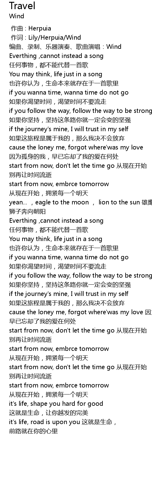 | [00:52:00] | if the journey' s mine, I will trust in my self rú guǒ zhè lǚ chéng shì shǔ yú wǒ de, nà me wǒ jué bú huì fàng qì |