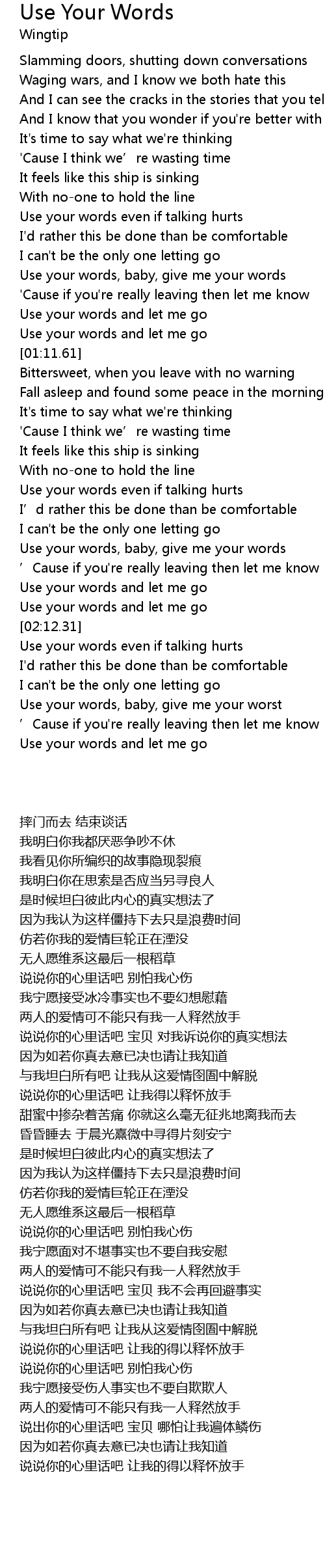 | [00:58.21] | Use your words and let me go |