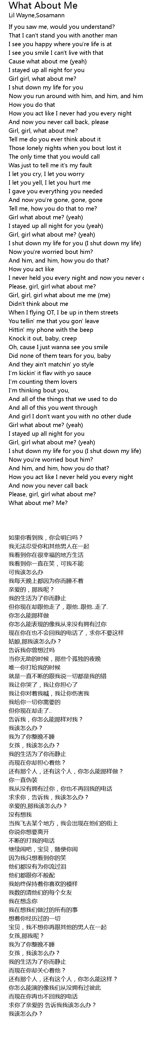 Cause what about me (yeah) |