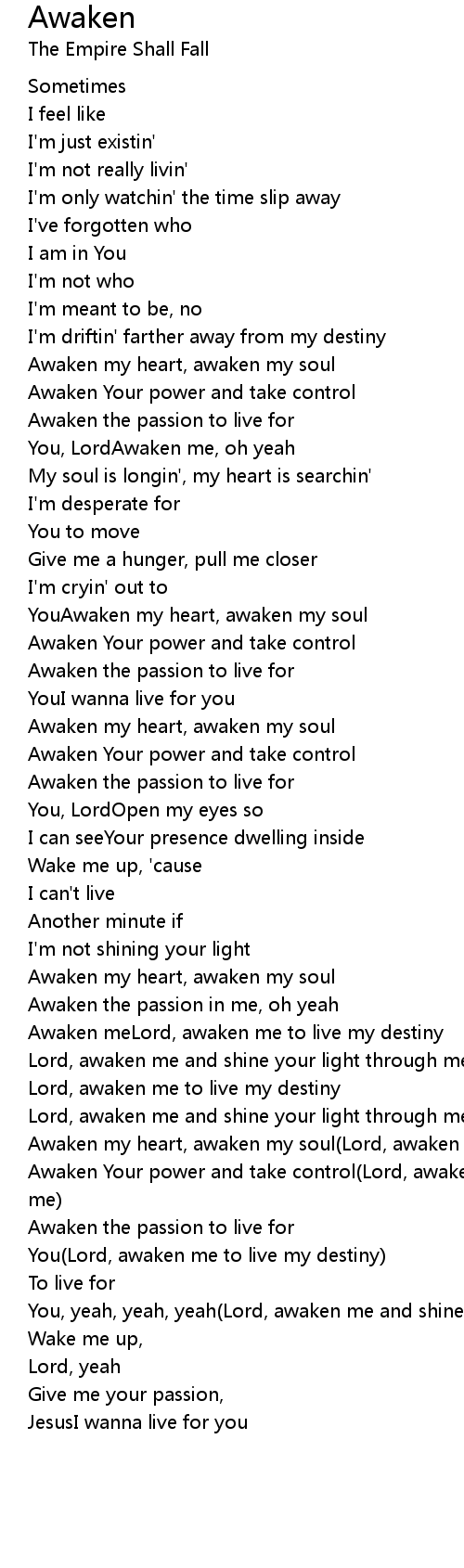 YouAwaken my heart, awaken my soul