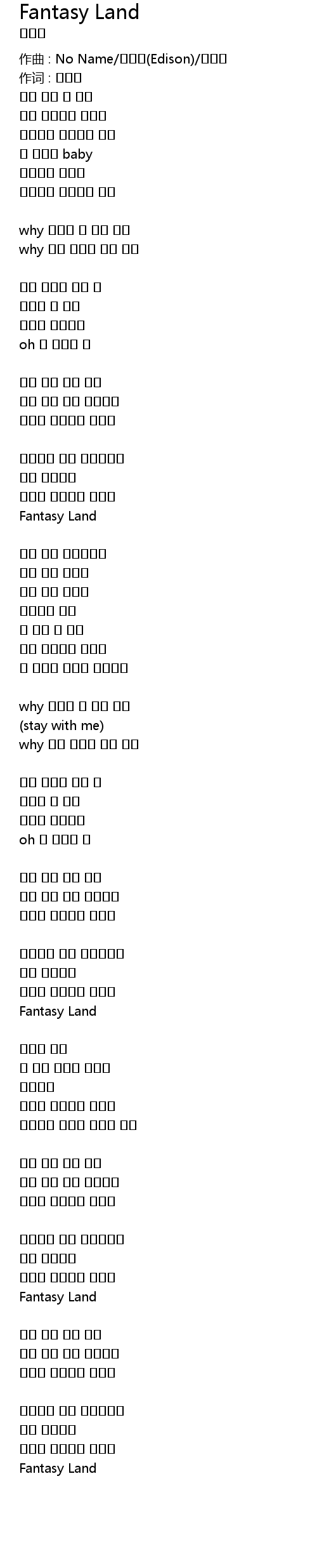 | 歌曲 | Fantasy Land |