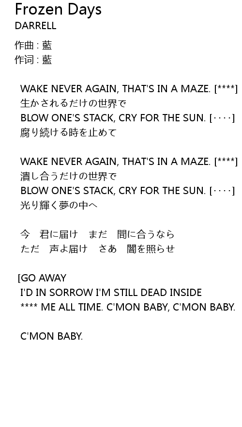 | BLOW ONE'S STACK, CRY FOR THE SUN. [・・・・] | |