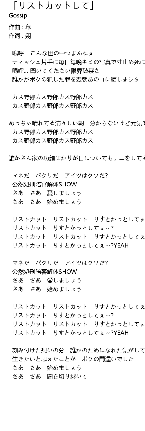 | リストカット りすとかっとしてぇ~?YEAH | |