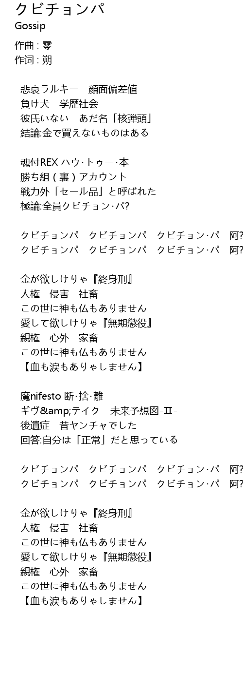 | クビチョンパ クビチョンパ クビチョン・パ 阿? | |