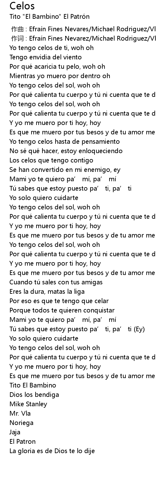 | [01:56.66] | Por eso es que te tengo que celar |