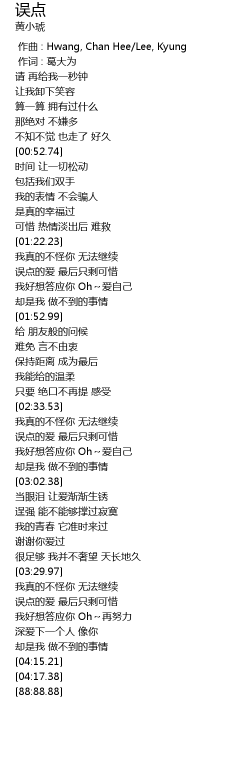 | [00:00.00] | zuo qu : Hwang, Chan Hee Lee, Kyung |