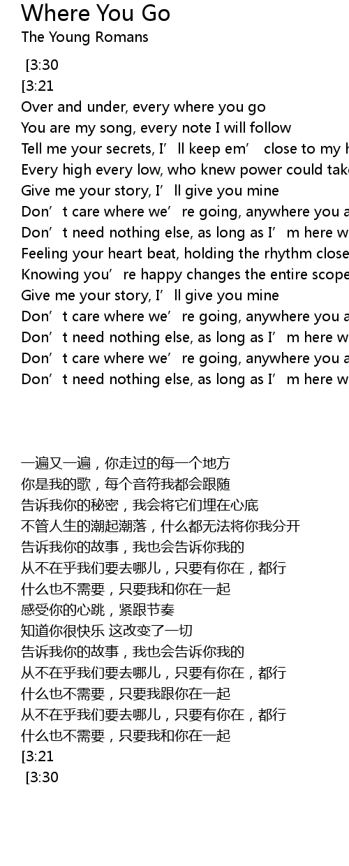 | [3:02][3:21] | Don' t care where we' re going, anywhere you are, will do |