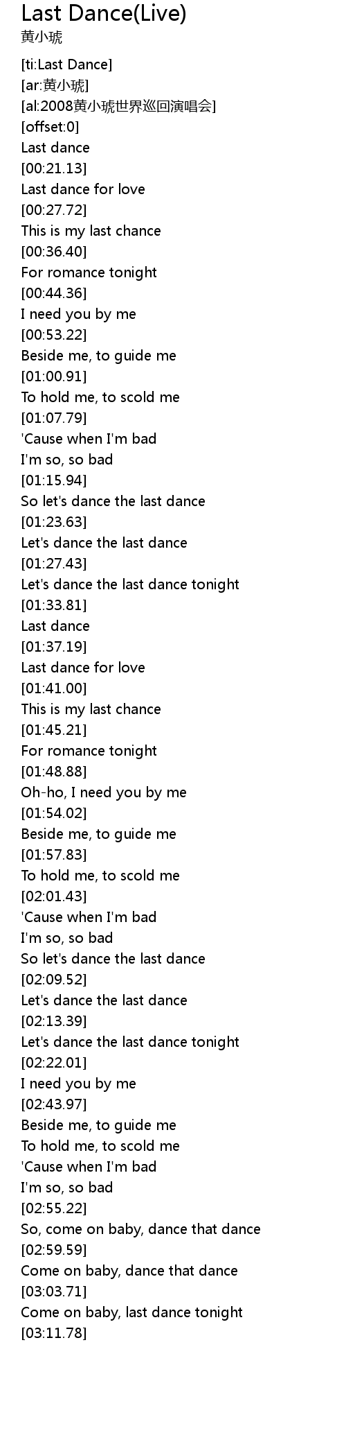 | [00:19.24] | Last dance |