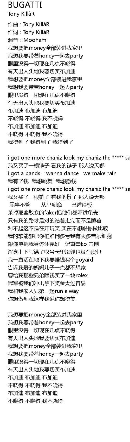 | 歌曲 | BUGATTI |