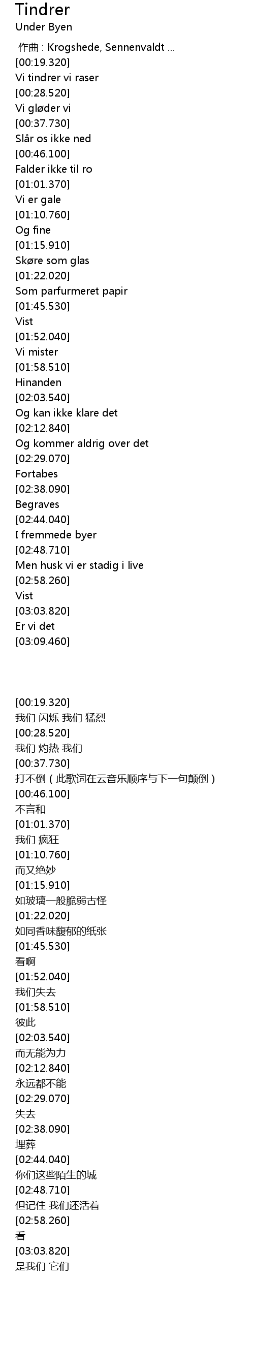 | [00:20.330] | Vi tindrer vi raser |