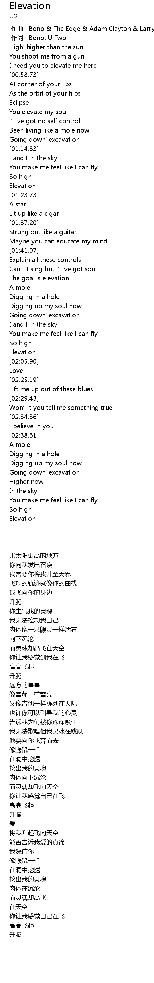 | [01:22.60] | Elevation |
